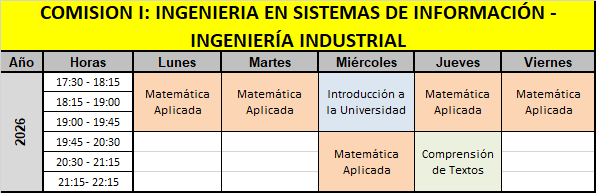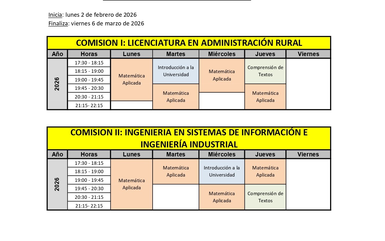 Horarios del Seminario de Ingreso